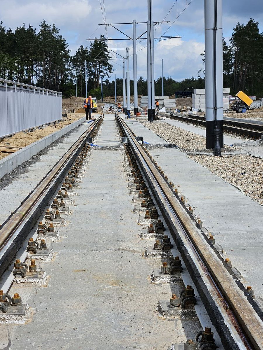 Montują tory i sieć trakcyjną, tworzą kwietne łąki i zielone torowiska, stawiają wiaty, które niedługo staną się zielonymi przystankami, budują jezdnie i chodniki, przygotowują się do budowy przejazdu drogowo-kolejowo-tramwajowego – wszystko to i o wiele więcej dzieje się w Toruniu na budowie nowej linii tramwajowej. Prace są już bardzo zaawansowane. Na odcinku od pl. NOT do przejazdu kolejowego na ul. Legionów (wraz z tym przejazdem) zaawansowanie wynosi 86%. Na odcinku od przejazdu kolejowo-drogowo-tramwajowego na ul. Legionów do skrzyżowania ul. Watzenrodego ze Strobanda zaawansowanie robót wynosi już 93 %. Na ostatnim etapie, od ronda Strobanda do nowo budowanej pętli przy ul. Heweliusza, zaawansowanie prac wynosi 55%.