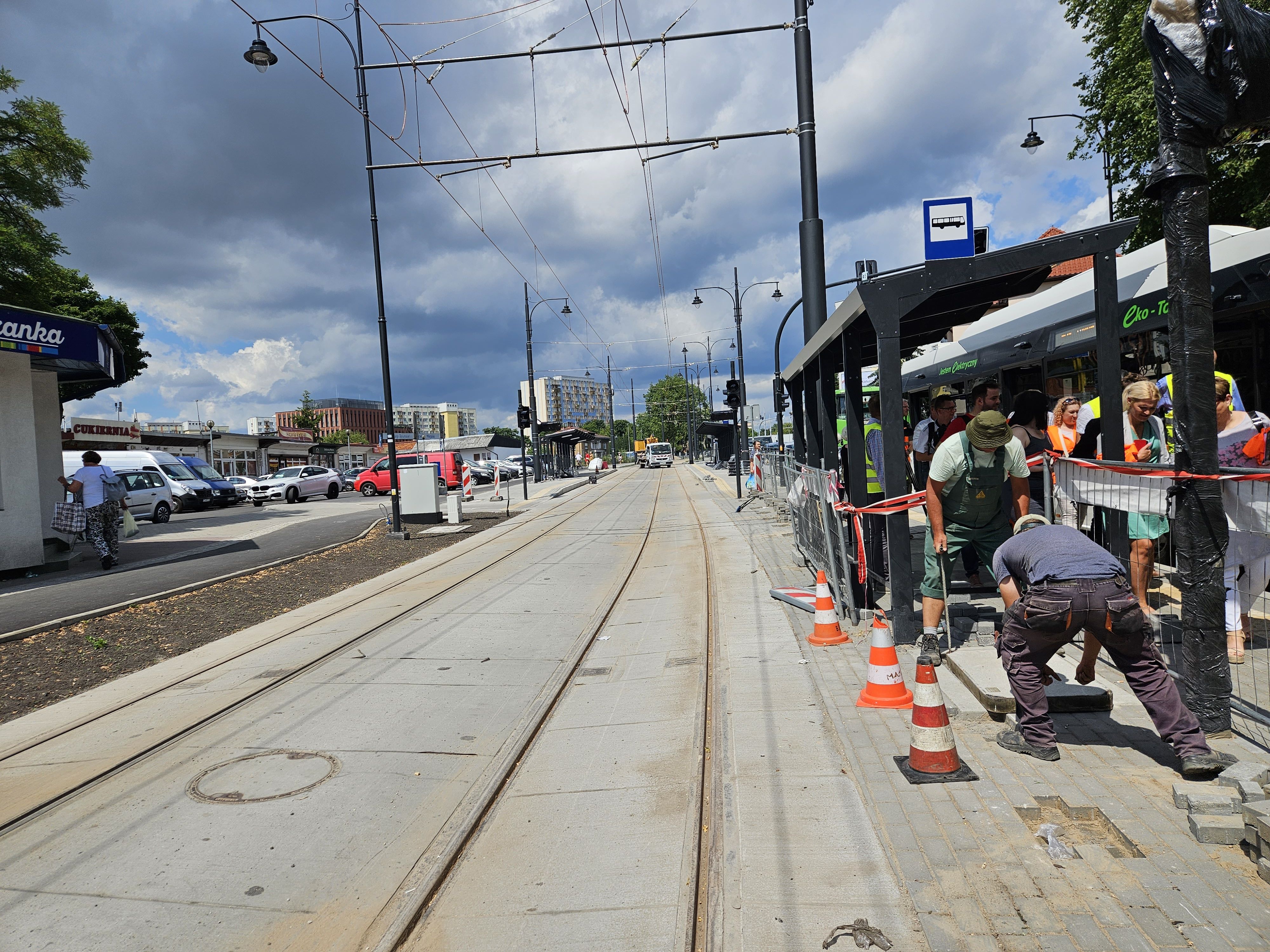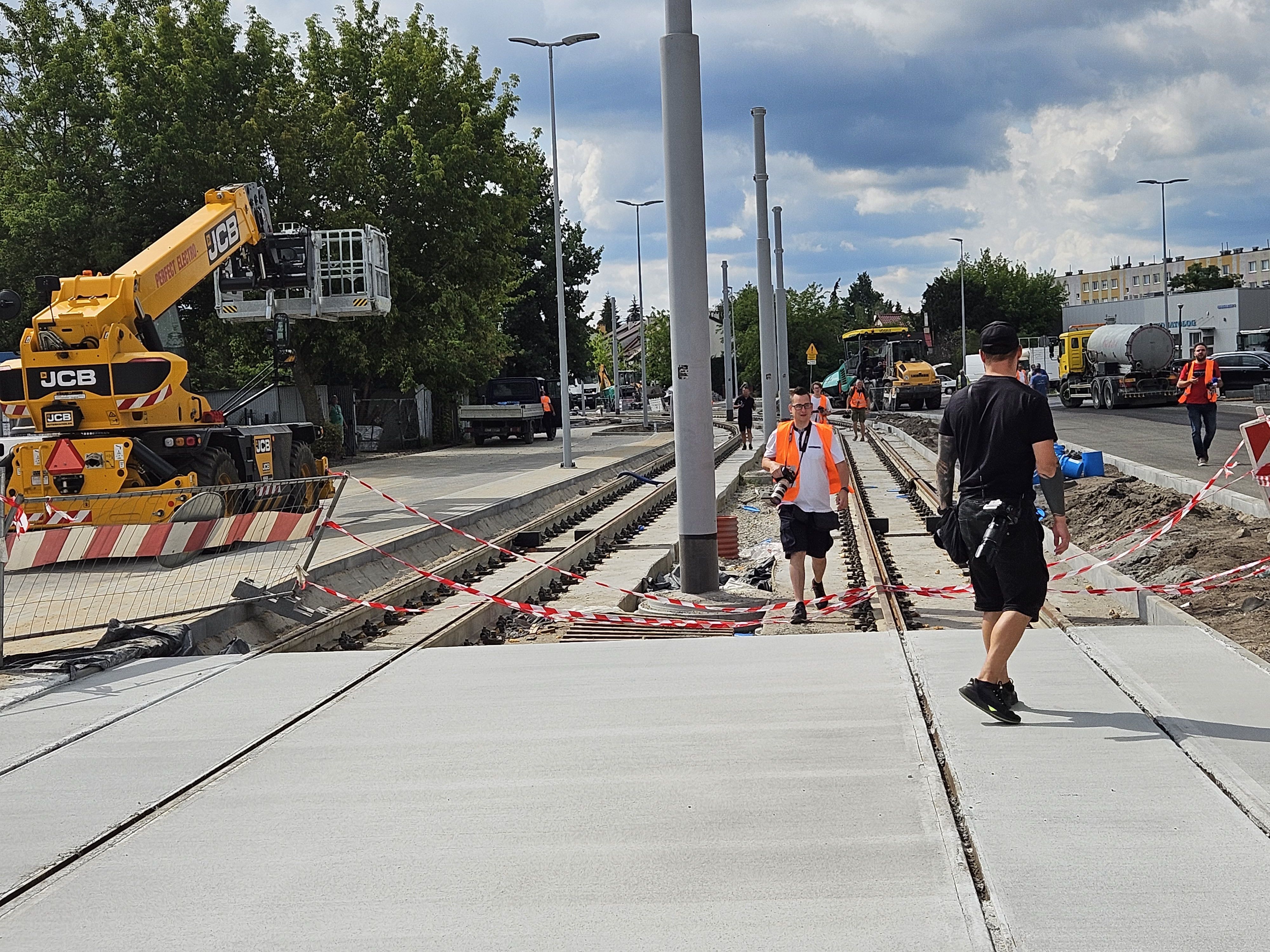 Budowa nowej linii tramwajowej jest już na finiszu. Znaczna część torowiska i infrastruktury towarzyszącej jest już gotowa, ale w kilku miejscach trwają jeszcze końcowe prace. Najwięcej dzieje się obecnie na ul. Legionów, w sąsiedztwie zajezdni autobusowej.