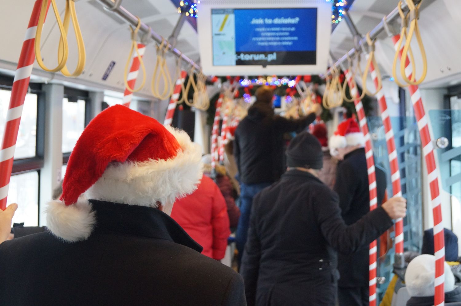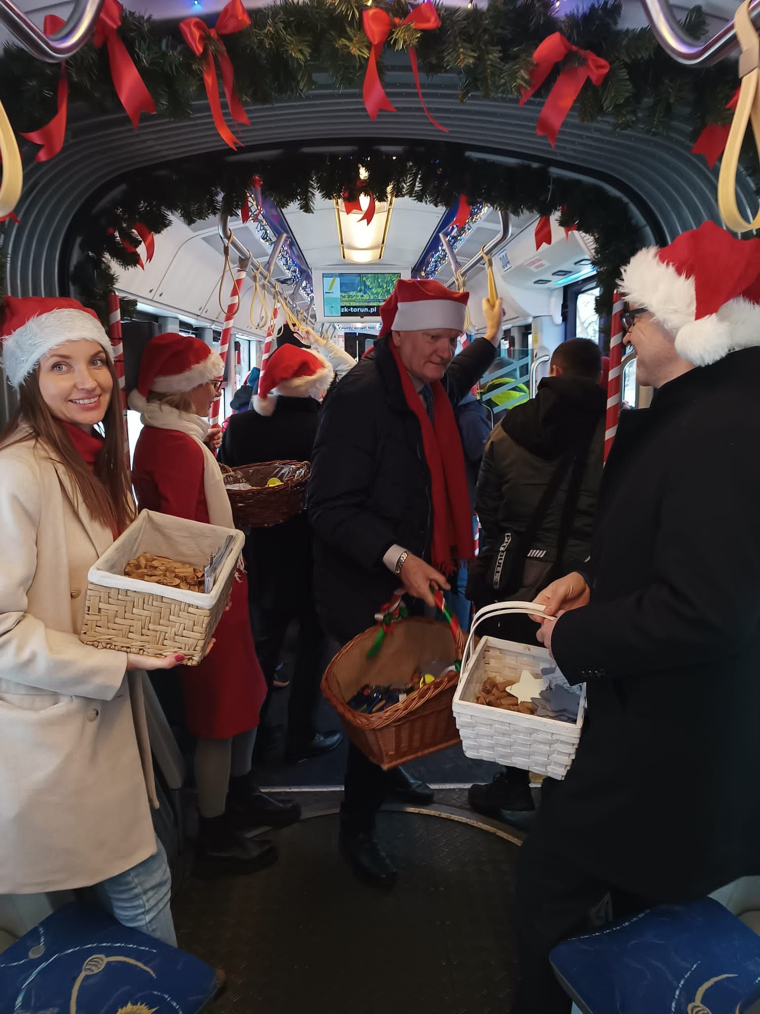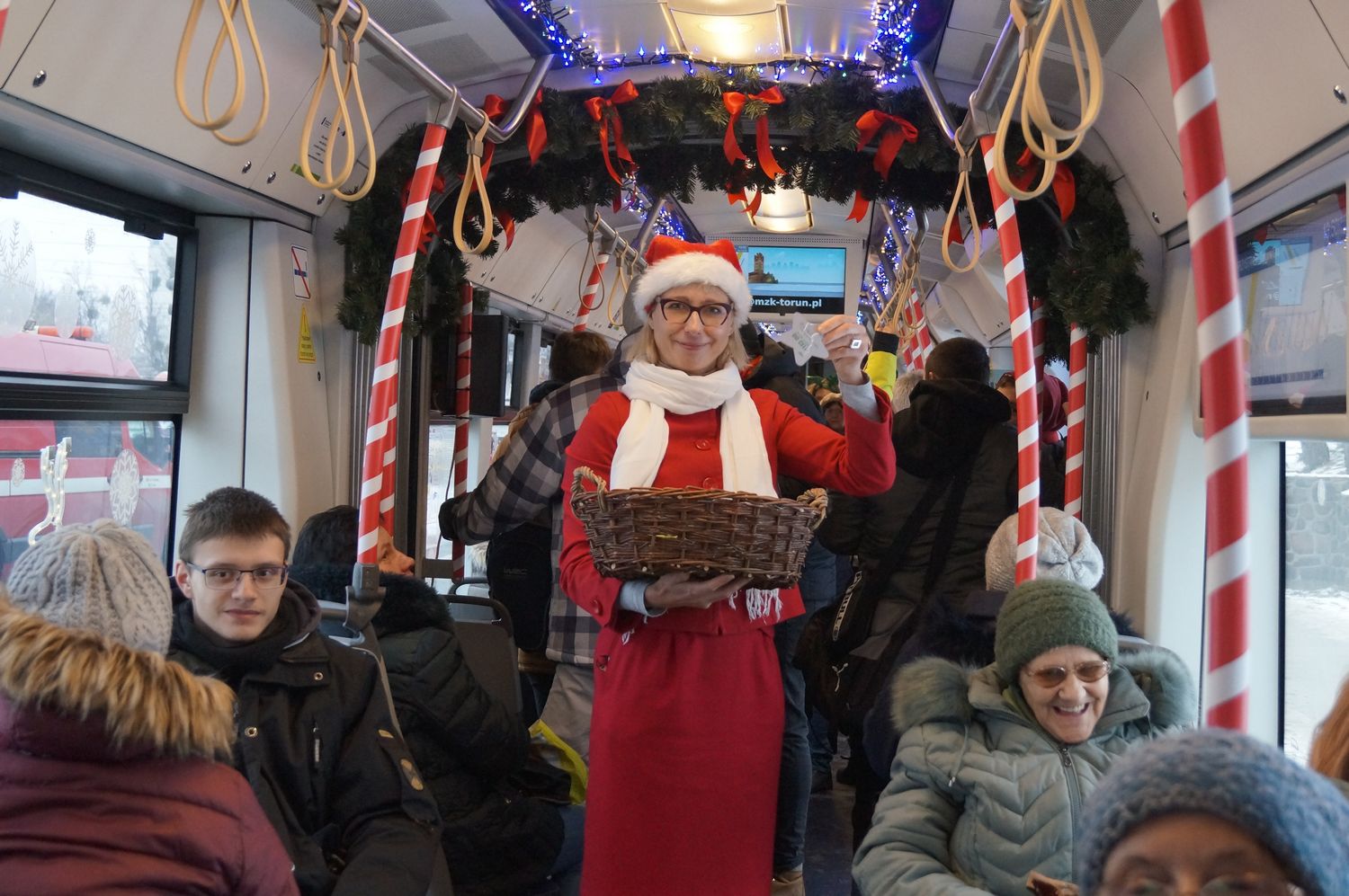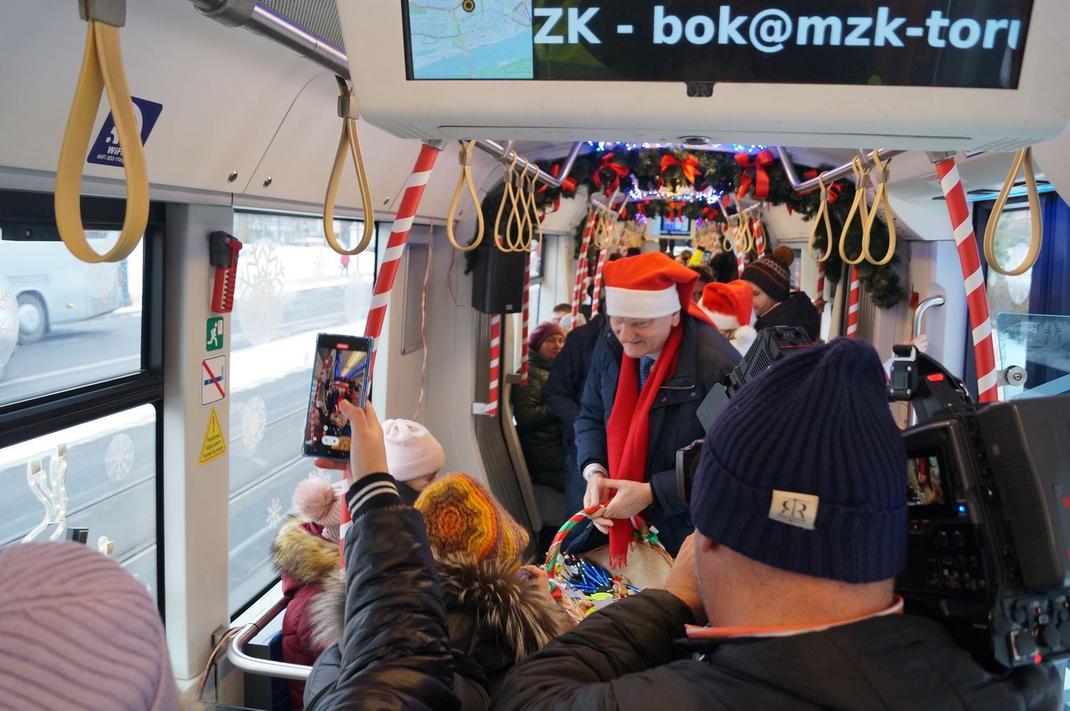 Ozdobiony światełkami, w czapce św. Mikołaja, z brodą i wąsami z przodu, a reniferem z tyłu, z poręczami jak gwiazdkowe cukierki i girlandami na przegubach, pełen słodkich (i nie tylko) upominków – jak co roku w Toruniu w mikołajki rozpoczął kursowanie świąteczny tramwaj Miejskiego Zakładu Komunikacji. W inauguracyjnym przejeździe wziął udział prezydent Torunia Michał Zaleski oraz prezesi MZK Zbigniew Wyszogrodzki oraz Piotr Rama. Piosenki świąteczne i kolędy śpiewały dzieci i młodzież z Ogniska Pracy Pozaszkolnej Dom Harcerza. Ustrojony świątecznie tramwaj będzie kursował po Toruniu do 6 stycznia 2024 r.