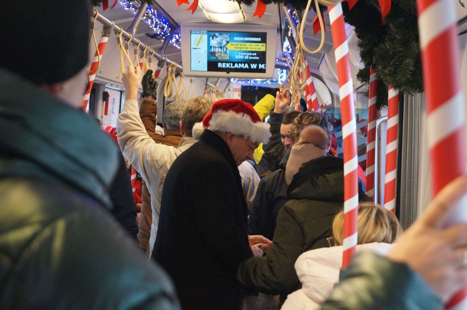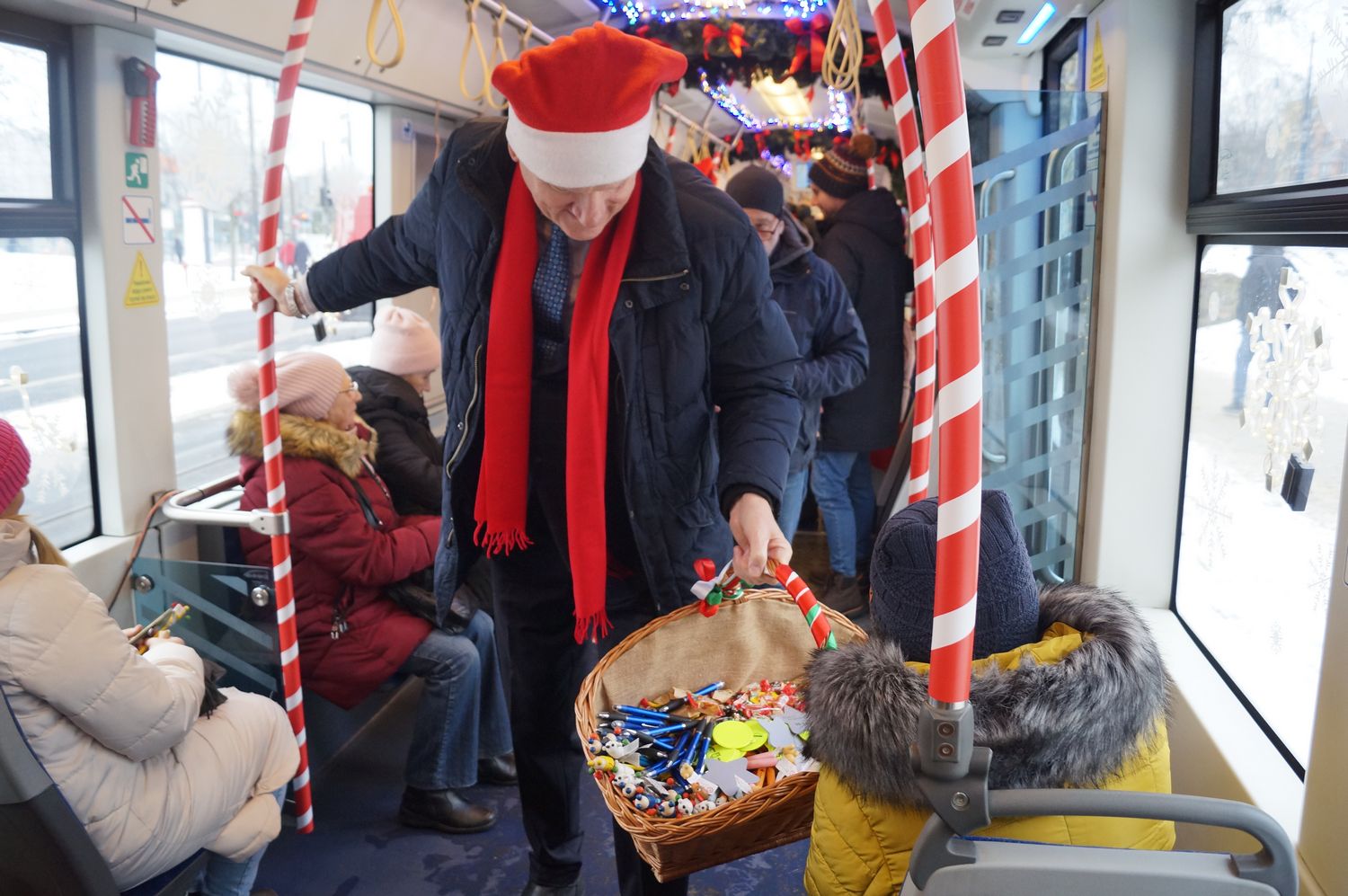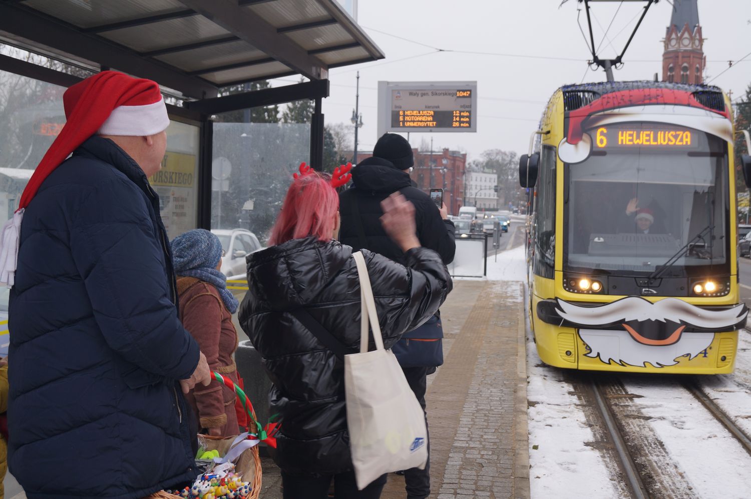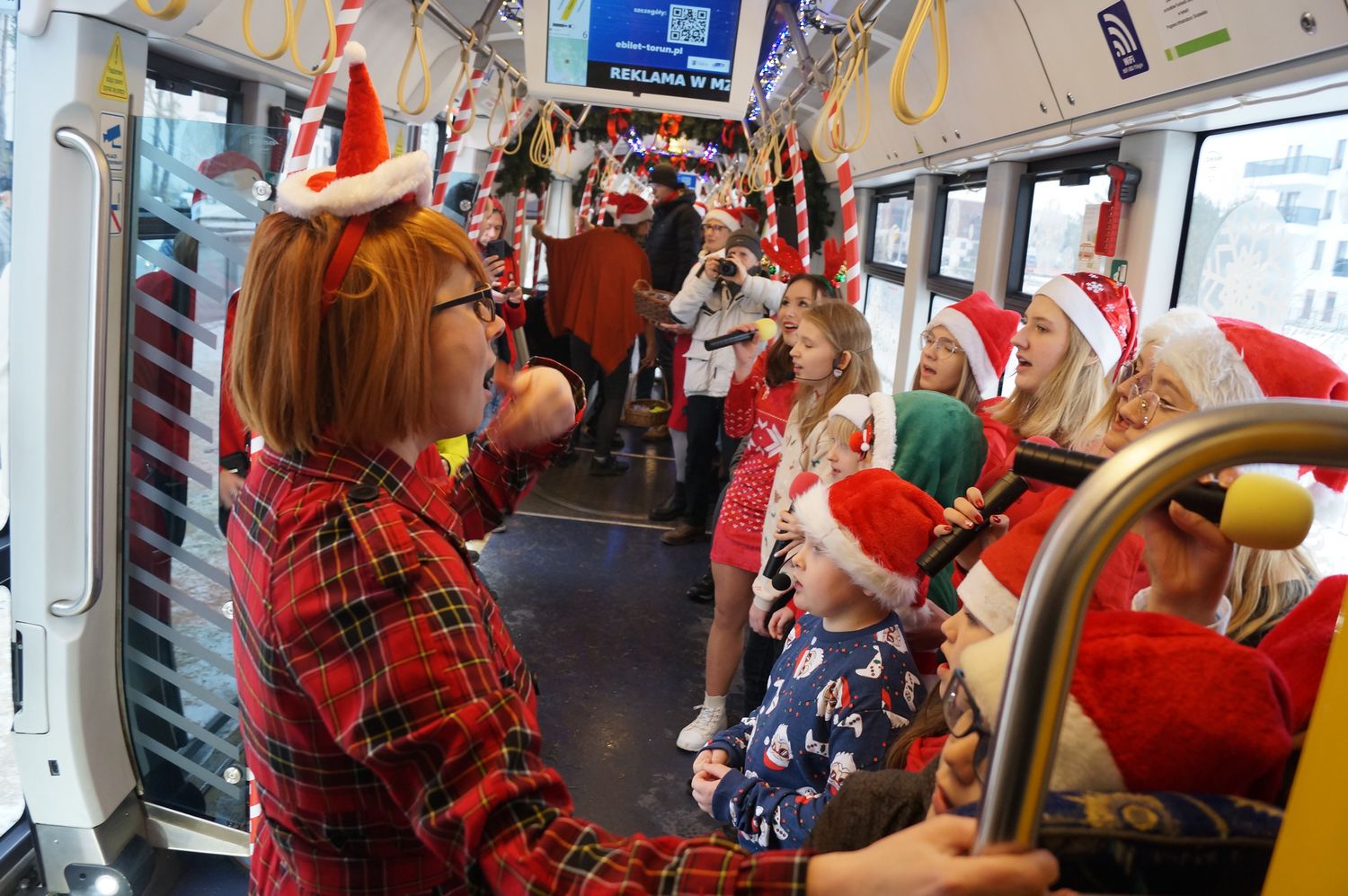 Ozdobiony światełkami, w czapce św. Mikołaja, z brodą i wąsami z przodu, a reniferem z tyłu, z poręczami jak gwiazdkowe cukierki i girlandami na przegubach, pełen słodkich (i nie tylko) upominków – jak co roku w Toruniu w mikołajki rozpoczął kursowanie świąteczny tramwaj Miejskiego Zakładu Komunikacji. W inauguracyjnym przejeździe wziął udział prezydent Torunia Michał Zaleski oraz prezesi MZK Zbigniew Wyszogrodzki oraz Piotr Rama. Piosenki świąteczne i kolędy śpiewały dzieci i młodzież z Ogniska Pracy Pozaszkolnej Dom Harcerza. Ustrojony świątecznie tramwaj będzie kursował po Toruniu do 6 stycznia 2024 r.
