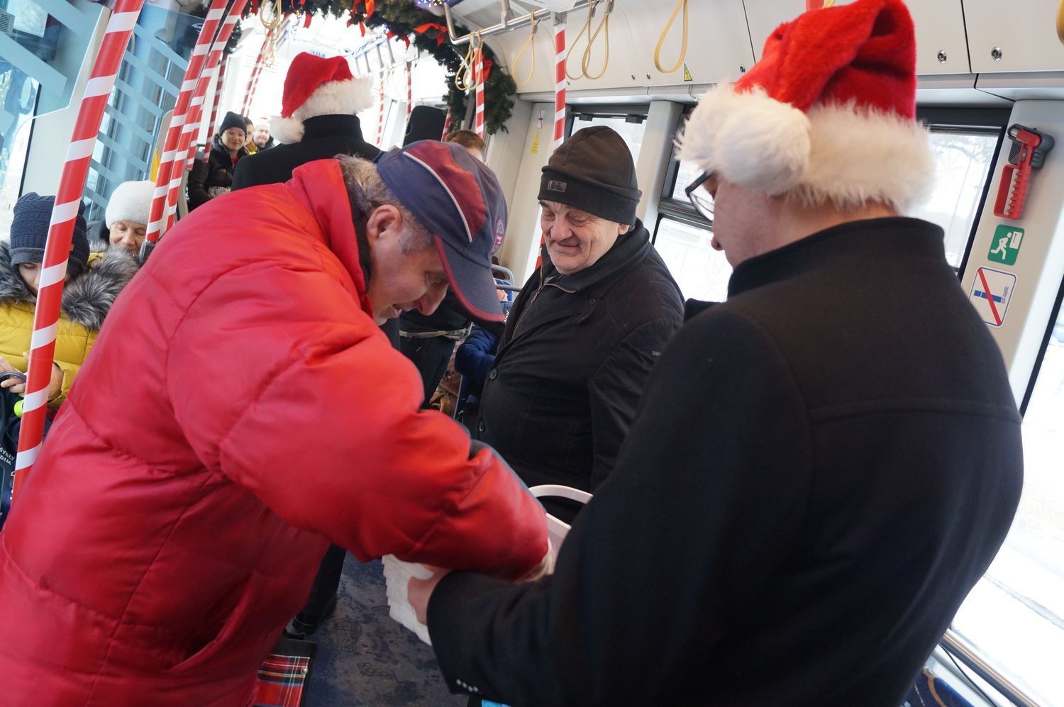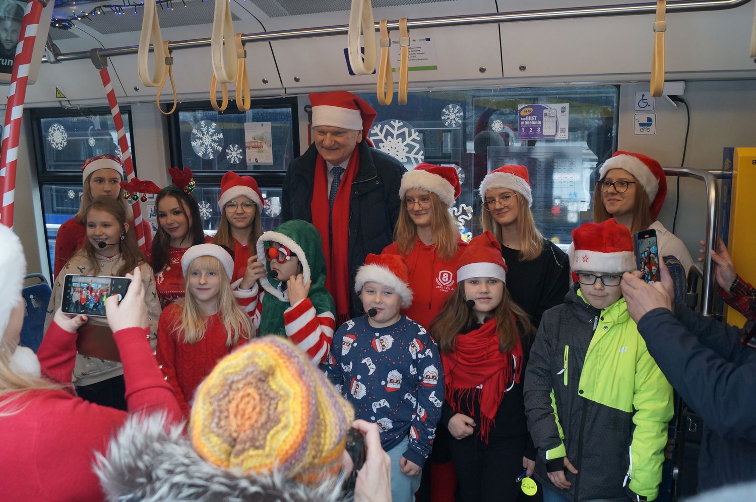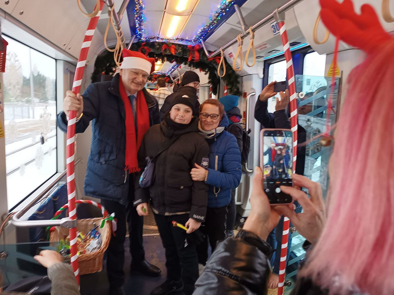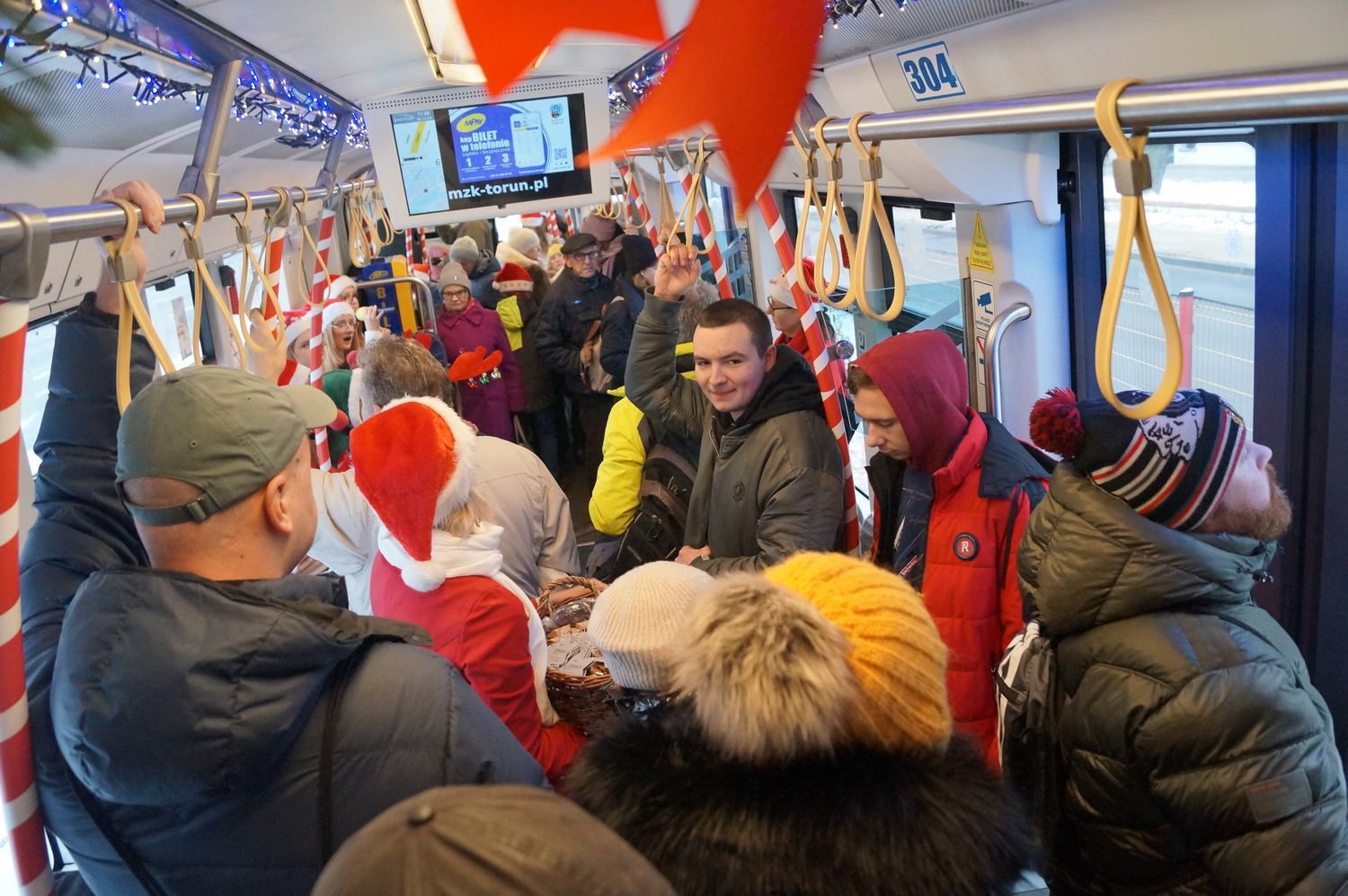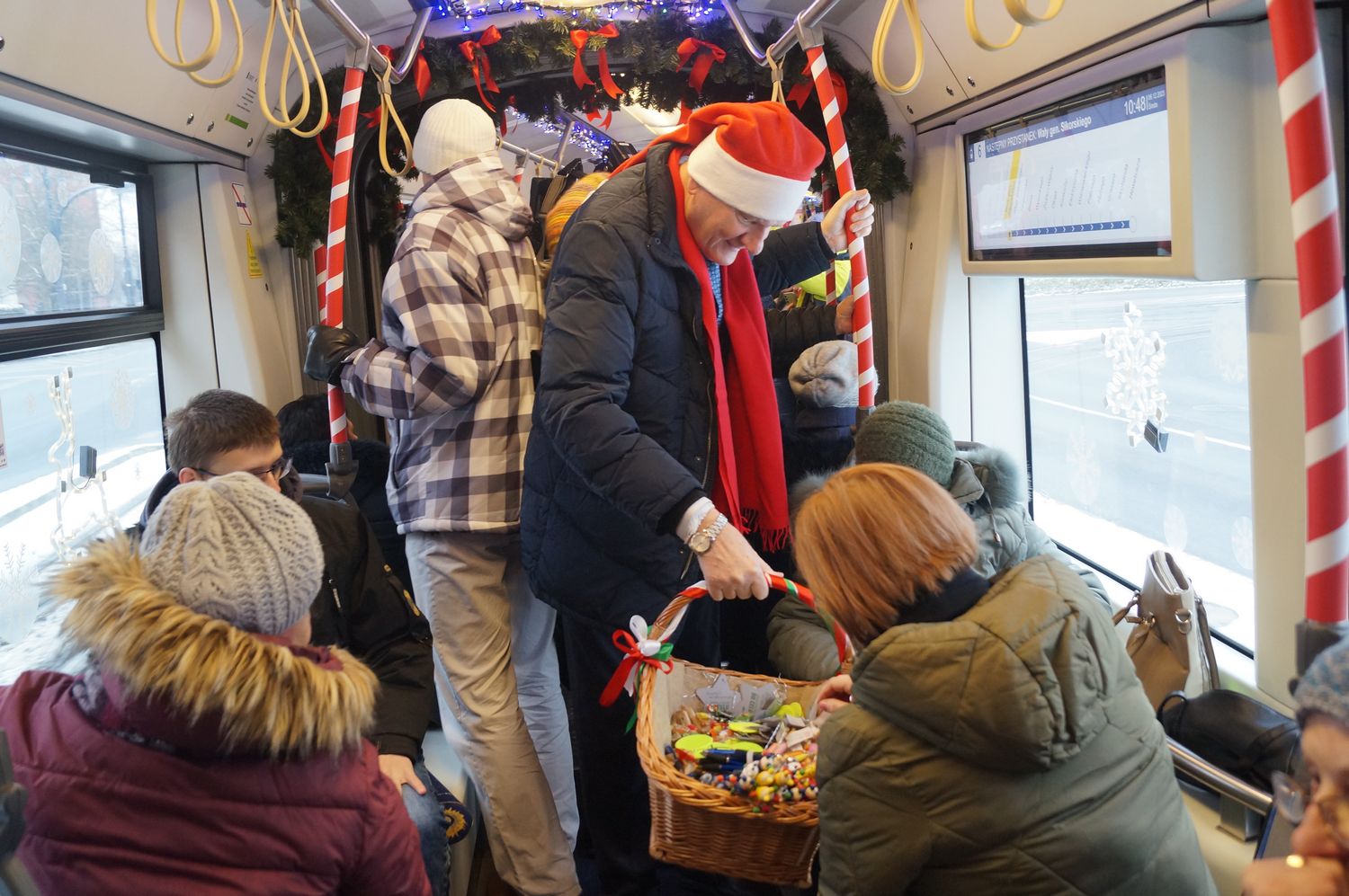 Ozdobiony światełkami, w czapce św. Mikołaja, z brodą i wąsami z przodu, a reniferem z tyłu, z poręczami jak gwiazdkowe cukierki i girlandami na przegubach, pełen słodkich (i nie tylko) upominków – jak co roku w Toruniu w mikołajki rozpoczął kursowanie świąteczny tramwaj Miejskiego Zakładu Komunikacji. W inauguracyjnym przejeździe wziął udział prezydent Torunia Michał Zaleski oraz prezesi MZK Zbigniew Wyszogrodzki oraz Piotr Rama. Piosenki świąteczne i kolędy śpiewały dzieci i młodzież z Ogniska Pracy Pozaszkolnej Dom Harcerza. Ustrojony świątecznie tramwaj będzie kursował po Toruniu do 6 stycznia 2024 r.