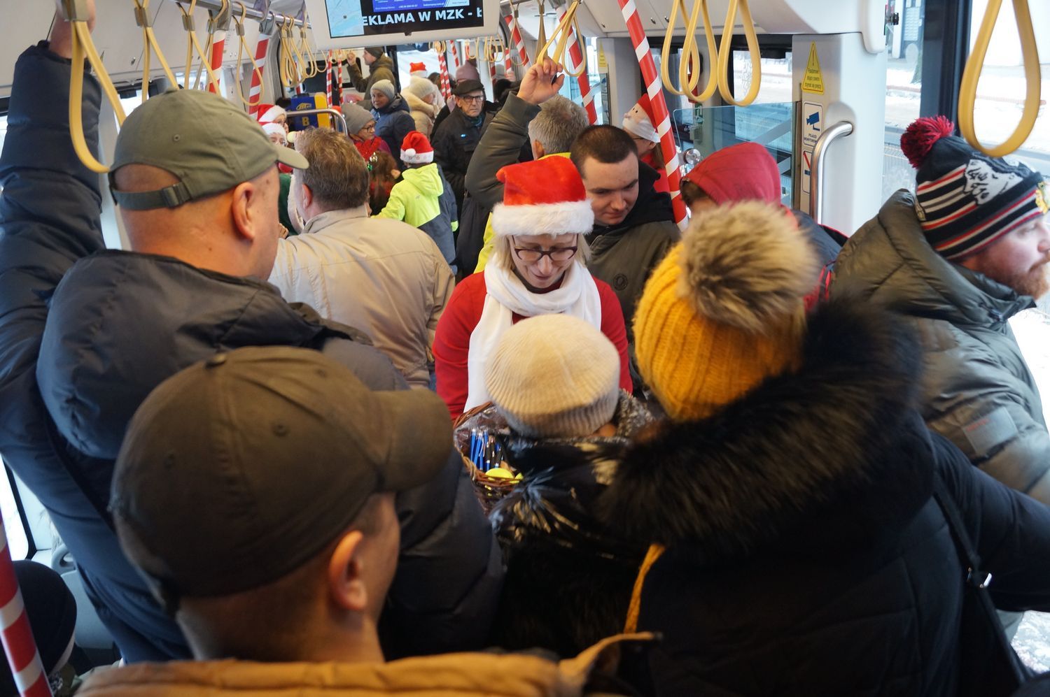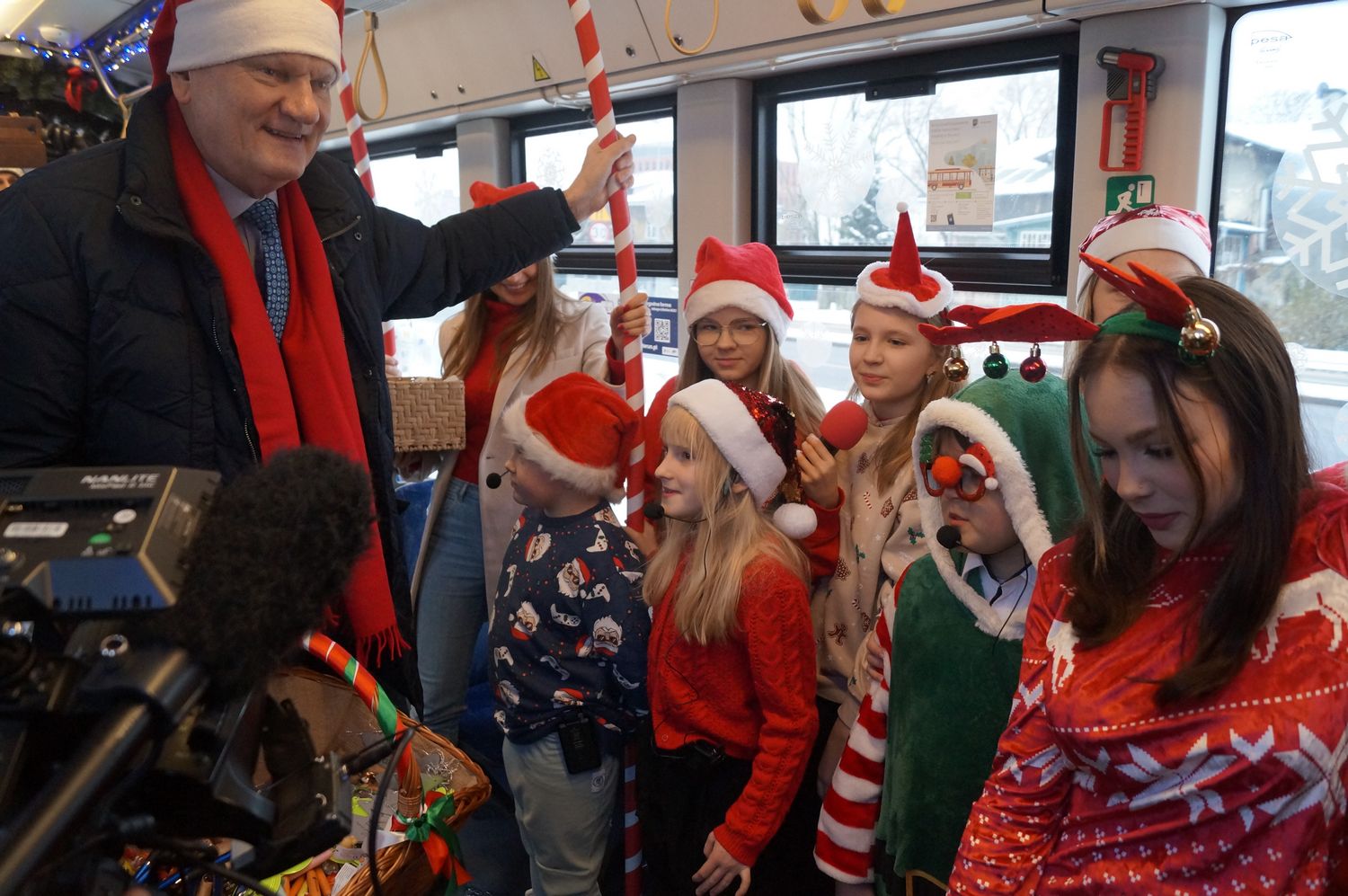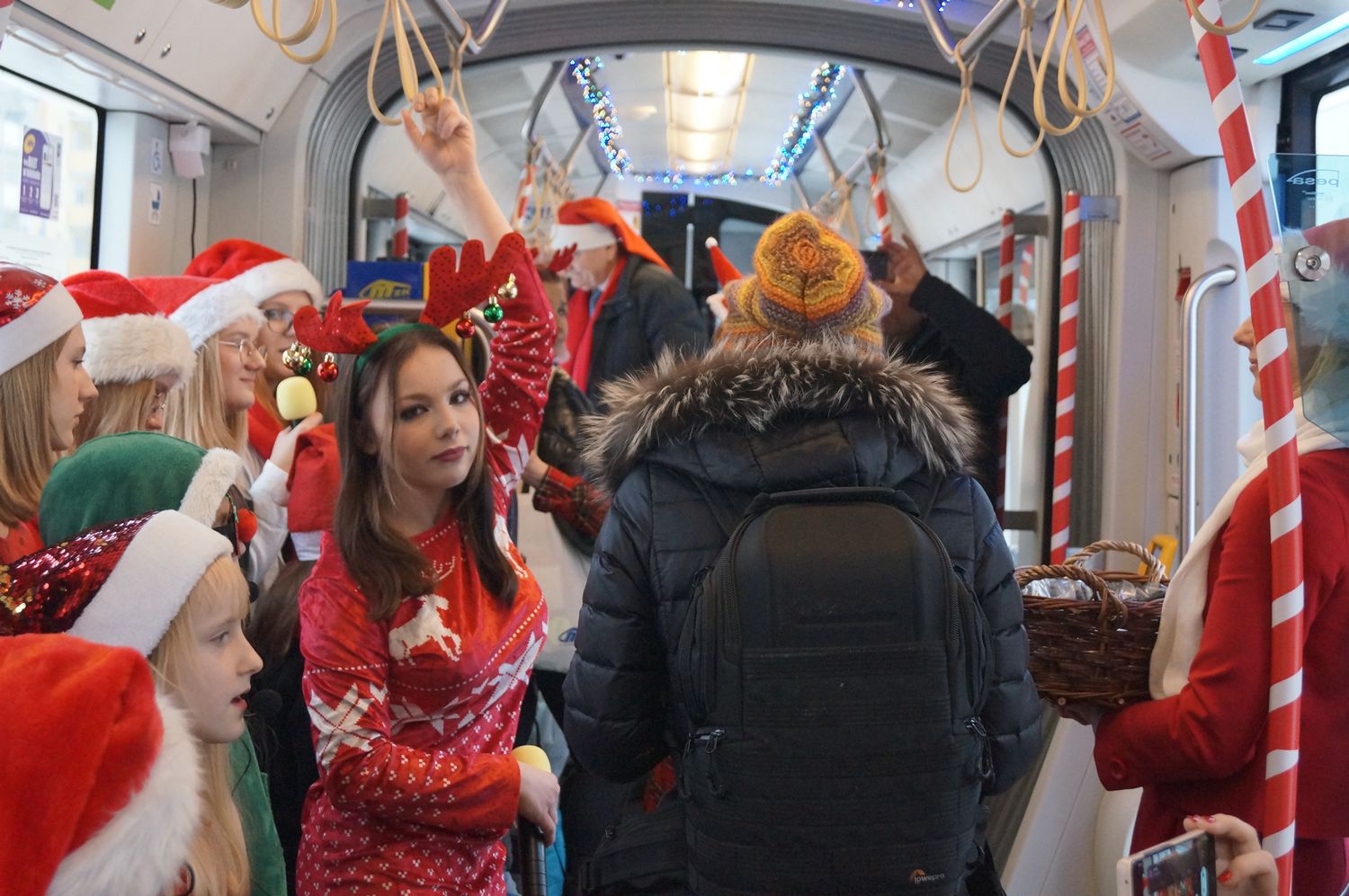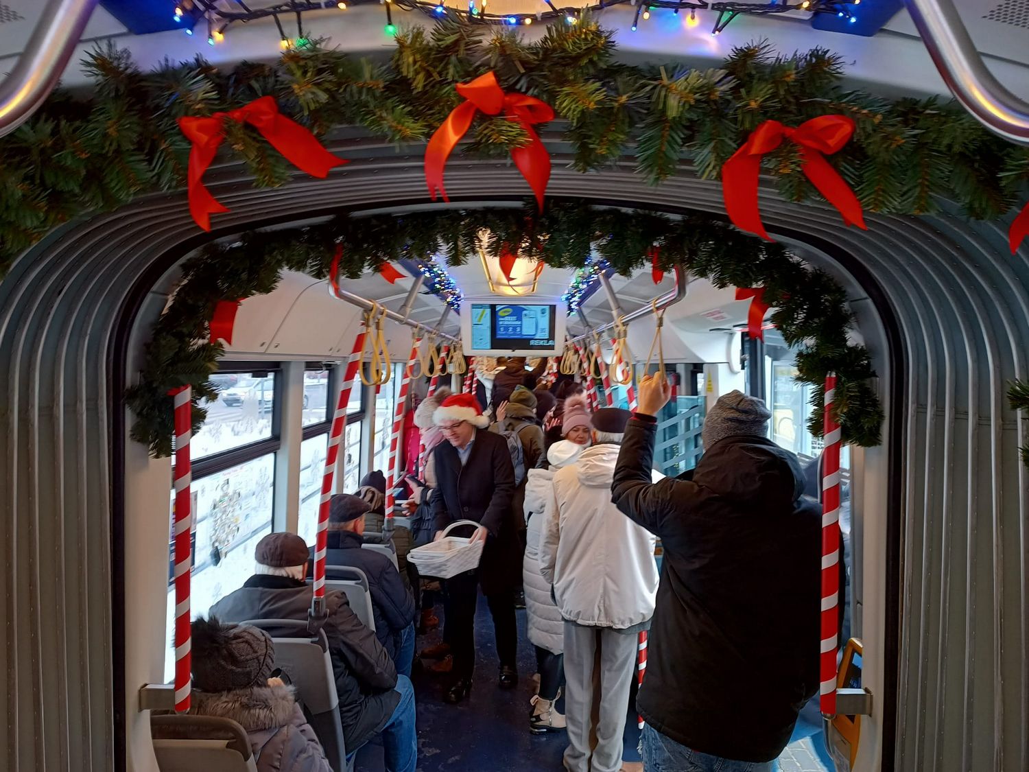 Ozdobiony światełkami, w czapce św. Mikołaja, z brodą i wąsami z przodu, a reniferem z tyłu, z poręczami jak gwiazdkowe cukierki i girlandami na przegubach, pełen słodkich (i nie tylko) upominków – jak co roku w Toruniu w mikołajki rozpoczął kursowanie świąteczny tramwaj Miejskiego Zakładu Komunikacji. W inauguracyjnym przejeździe wziął udział prezydent Torunia Michał Zaleski oraz prezesi MZK Zbigniew Wyszogrodzki oraz Piotr Rama. Piosenki świąteczne i kolędy śpiewały dzieci i młodzież z Ogniska Pracy Pozaszkolnej Dom Harcerza. Ustrojony świątecznie tramwaj będzie kursował po Toruniu do 6 stycznia 2024 r.