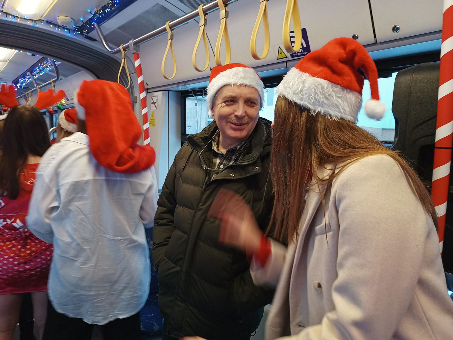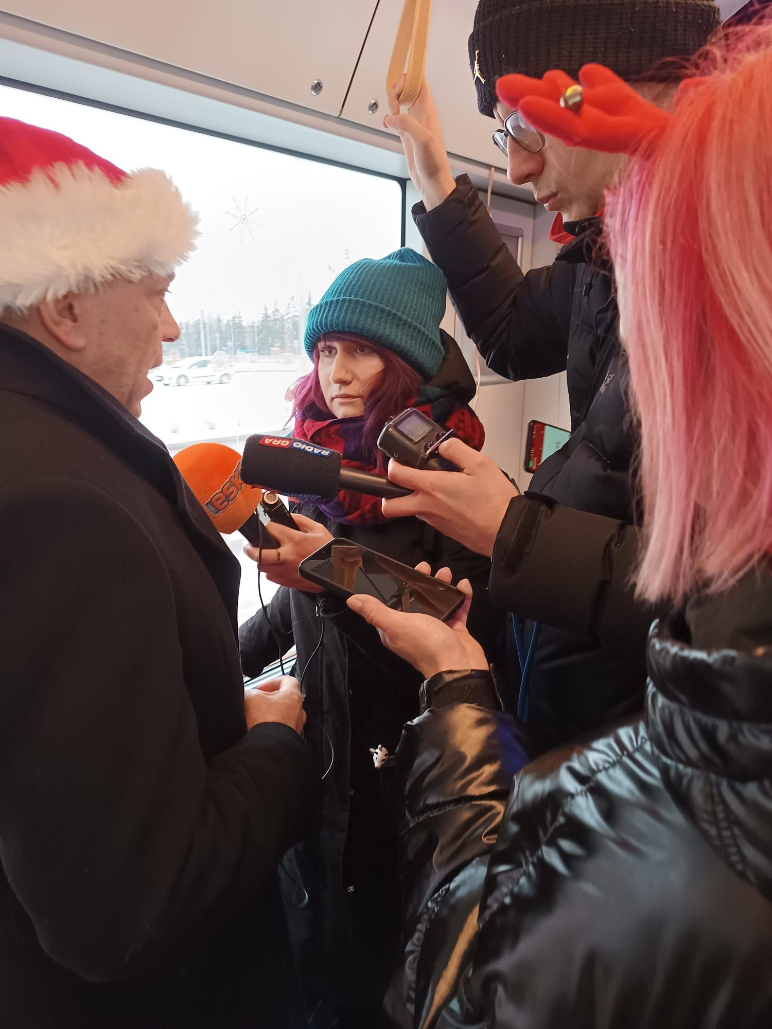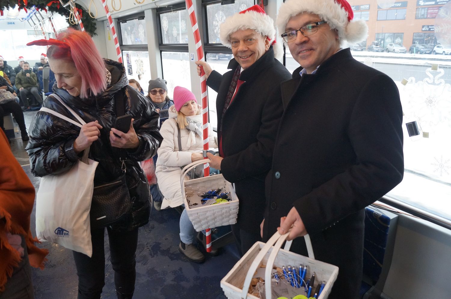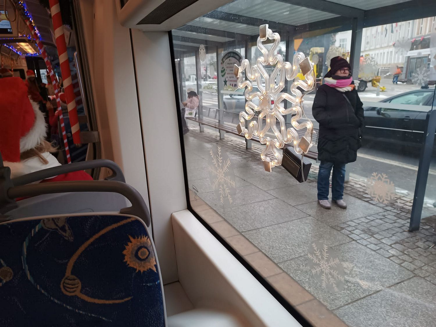 Ozdobiony światełkami, w czapce św. Mikołaja, z brodą i wąsami z przodu, a reniferem z tyłu, z poręczami jak gwiazdkowe cukierki i girlandami na przegubach, pełen słodkich (i nie tylko) upominków – jak co roku w Toruniu w mikołajki rozpoczął kursowanie świąteczny tramwaj Miejskiego Zakładu Komunikacji. W inauguracyjnym przejeździe wziął udział prezydent Torunia Michał Zaleski oraz prezesi MZK Zbigniew Wyszogrodzki oraz Piotr Rama. Piosenki świąteczne i kolędy śpiewały dzieci i młodzież z Ogniska Pracy Pozaszkolnej Dom Harcerza. Ustrojony świątecznie tramwaj będzie kursował po Toruniu do 6 stycznia 2024 r.