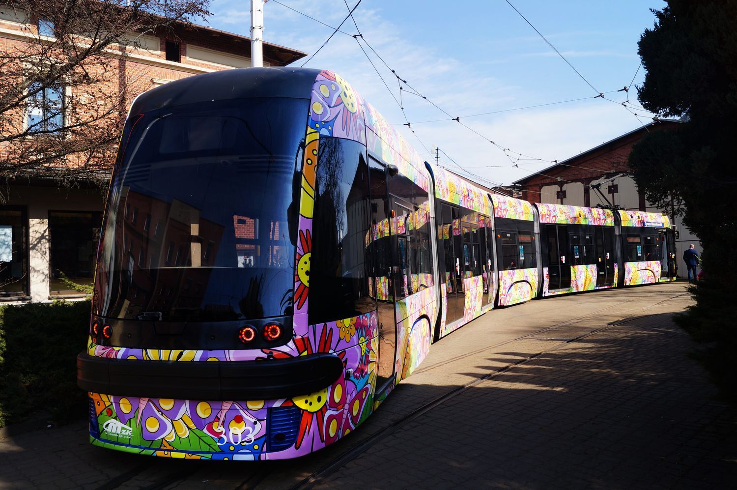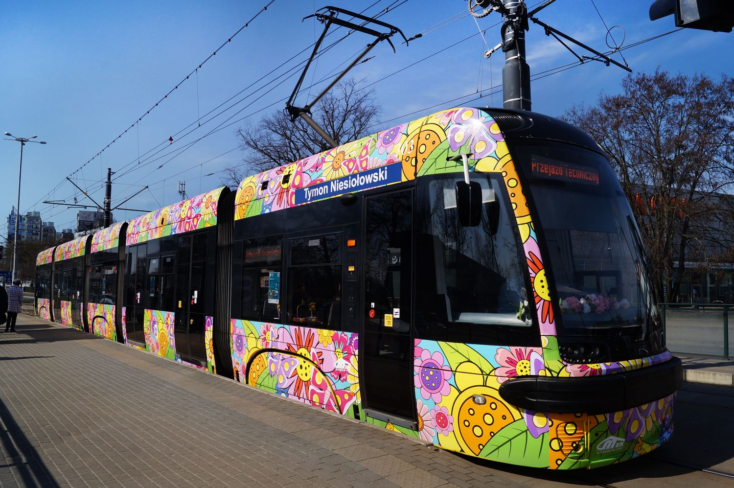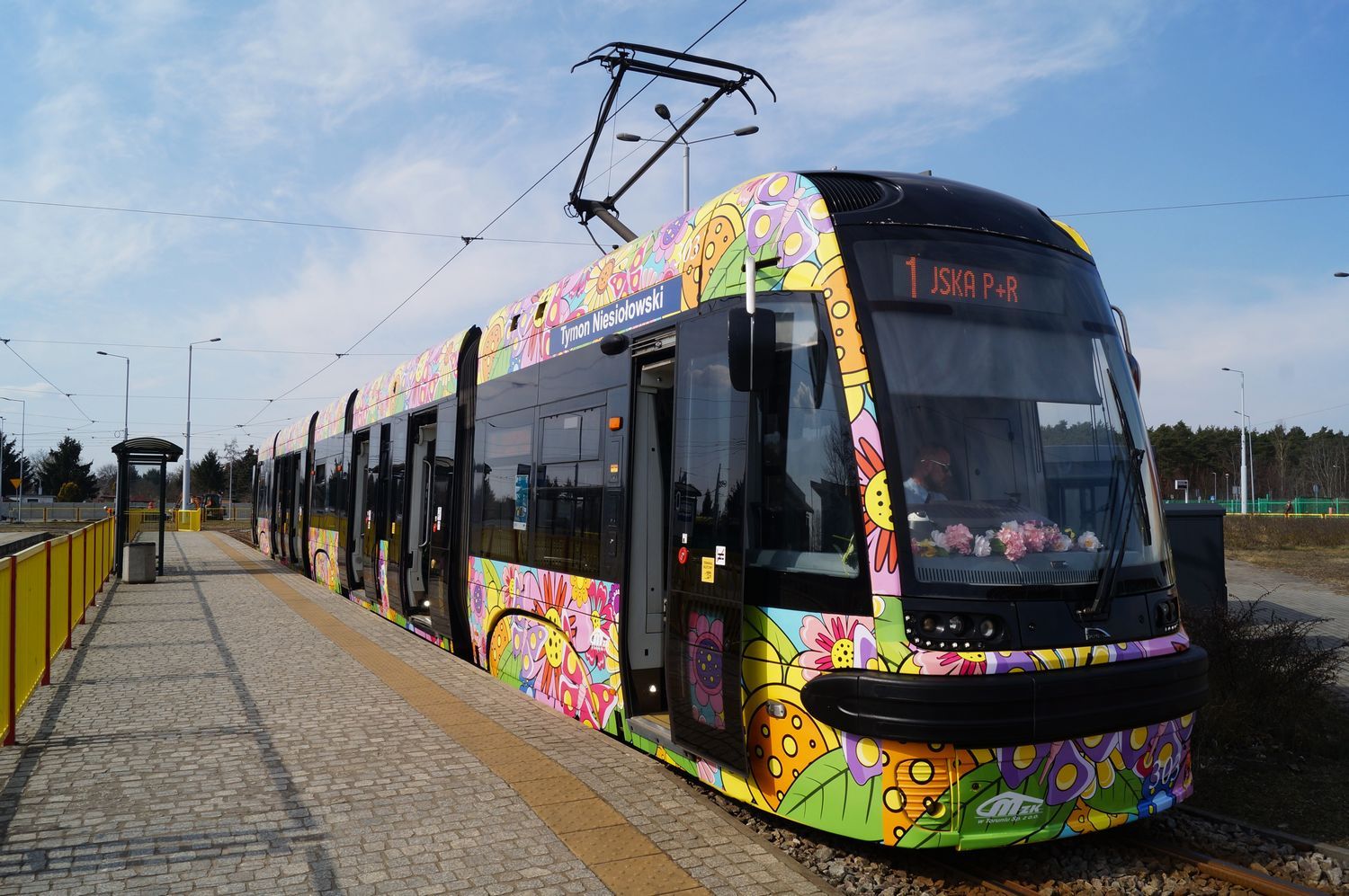 Kolorowy, napędzający pozytywną energią, cały w kwiatach, na których przysiadły motyle – w piątek 21 marca 2025 r., w pierwszy dzień wiosny, na toruńskie tory wyjechał wiosenno-letni tramwaj Miejskiego Zakładu Komunikacji.
