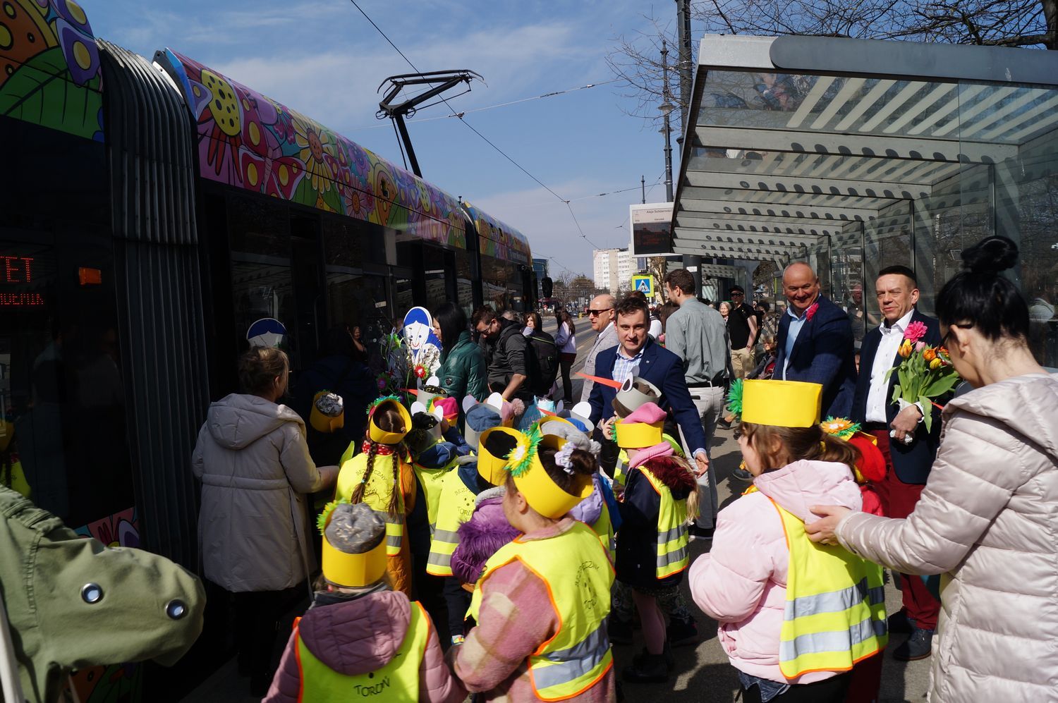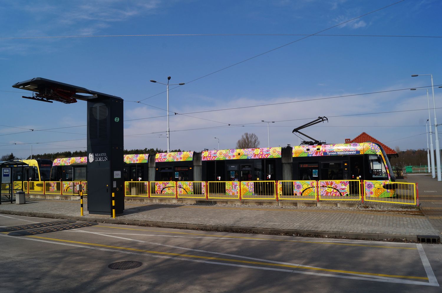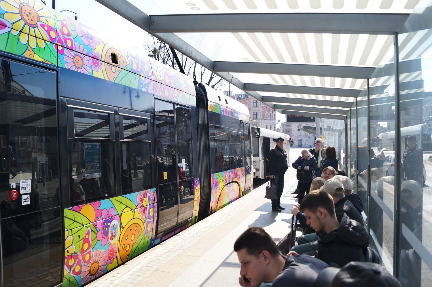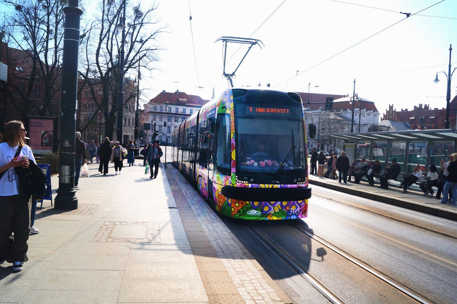 Kolorowy, napędzający pozytywną energią, cały w kwiatach, na których przysiadły motyle – w piątek 21 marca 2025 r., w pierwszy dzień wiosny, na toruńskie tory wyjechał wiosenno-letni tramwaj Miejskiego Zakładu Komunikacji.