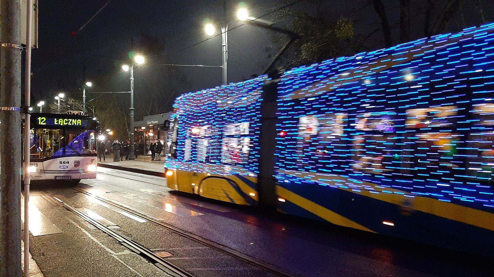 Już jest! W nowej odsłonie, świetlisty, pełen dobrej energii, muzyki i radosnych życzeń – 5 grudnia 2025 r. pierwszy w tym sezonie kurs odbył toruński świąteczny tramwaj Miejskiego Zakładu Komunikacji. Będzie woził pasażerów do 6 stycznia.